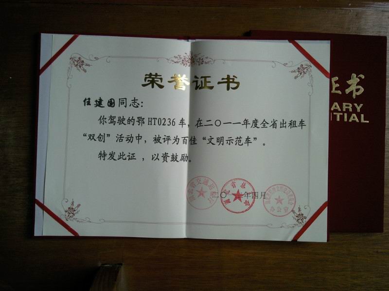 在創(chuàng)建和諧勞動關(guān)系活動中,荊門市公交出租汽車有限公司充分發(fā)揮和調(diào)動廣大駕駛員的勞動熱情和創(chuàng)造活力,獲得了一系列可喜成績。雷鋒車隊隊長曾凡華,2011年獲得省雙創(chuàng)“文明示范車”、荊門市出租行業(yè)“服務先鋒號”;2012年獲得荊門市“十佳的哥”榮譽稱號;前任隊長王建春獲得省交通廳“優(yōu)秀班組長”榮譽稱號;隊員任建國獲省交通廳“文明示范車”先進個人稱號。2013年6月,公司雷鋒車隊獲“全國工人先鋒號”榮譽。2014年2月28日,公司鄂HT1223雷鋒車駕駛員張華維獲省精神文明建設委員會辦公室、省交通運輸廳“雷鋒號”榮譽標牌。雷鋒車隊先后涌現(xiàn)出一批優(yōu)秀駕駛員,分別獲得了荊門出租汽車行業(yè)“服務先鋒號”、“十佳的哥的姐”等稱號及“荊門市道德模范提名獎”、“荊門市見義勇為先進集體”。